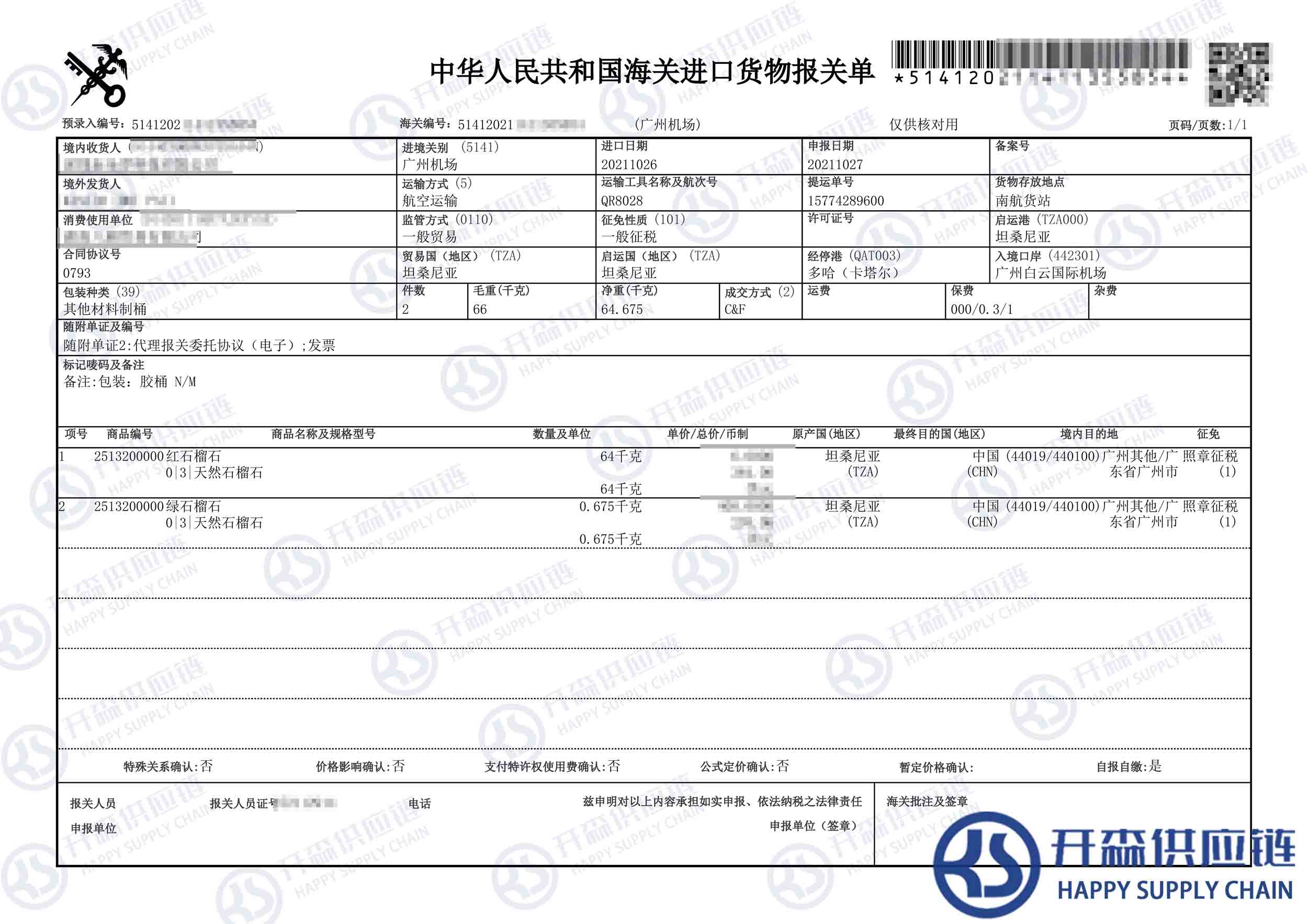 一、坦桑尼亞石榴石進(jìn)口報關(guān)代理案例詳情