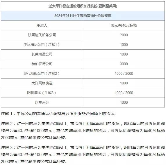 2021年9月1日生效的GRI是2020年以來東亞/美國航線第17次的調整。