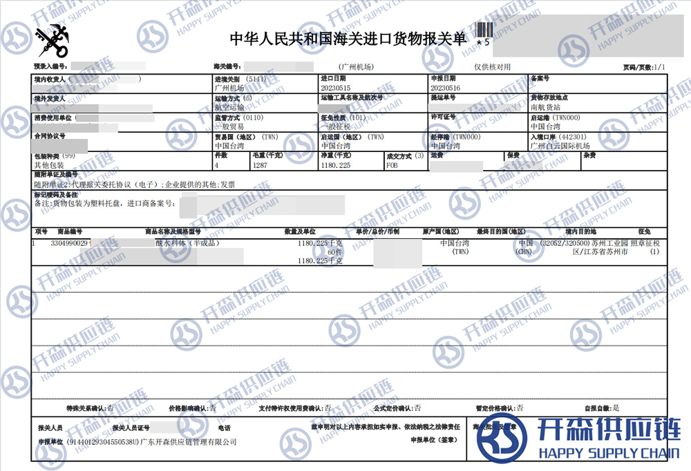一、中國(guó)臺(tái)灣化妝品半成品進(jìn)口報(bào)關(guān)代理案例詳情