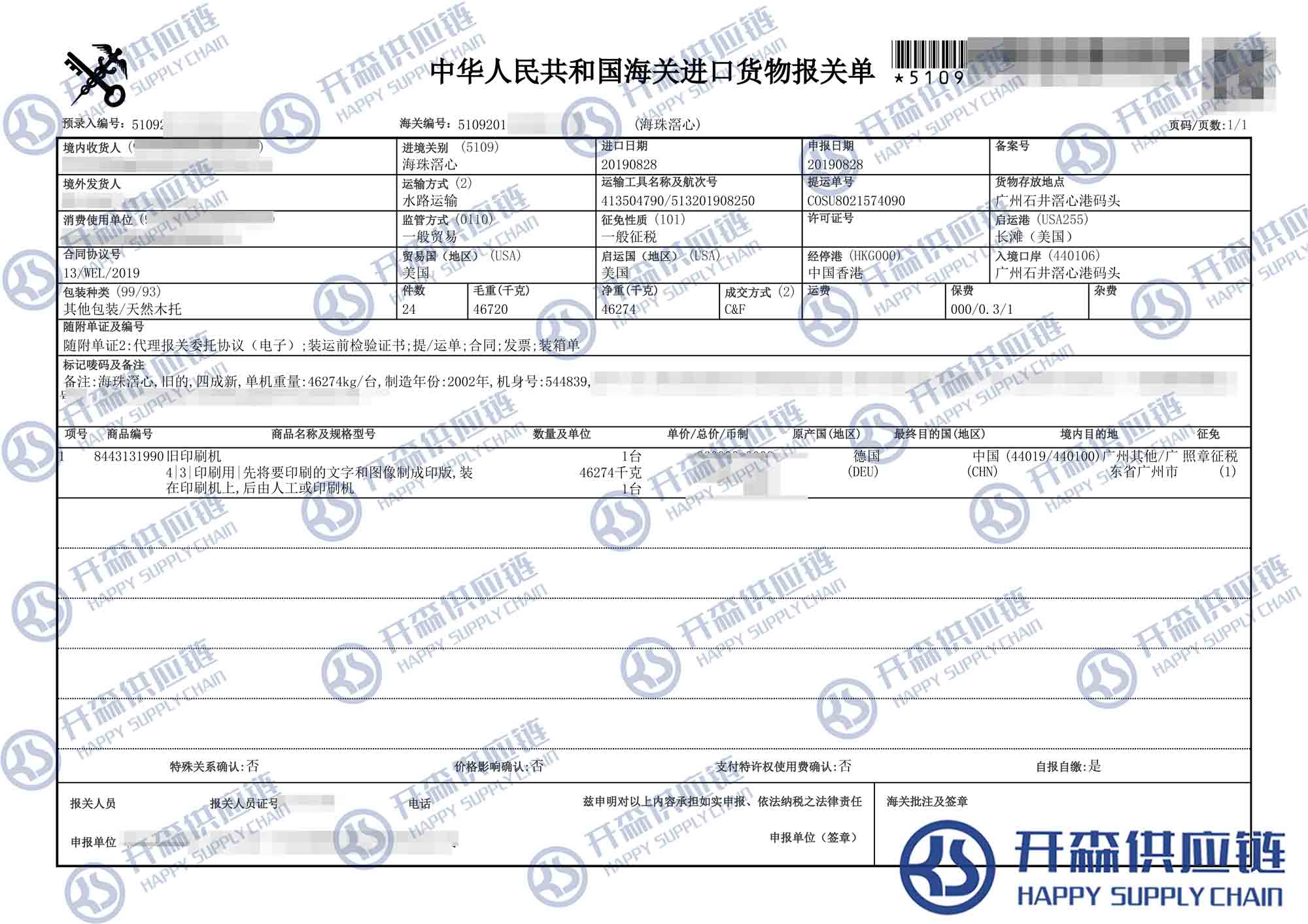 開森進口供應(yīng)鏈擁有豐富二手舊機械設(shè)備進口操作經(jīng)驗及案例,經(jīng)常在廣東,上海,香港等主要港口操作機械進口報關(guān)項目,報關(guān)代理為主要業(yè)務(wù),專業(yè)從事機械進口海運、報檢、報關(guān)、倉儲、物流配送等一系列進口清關(guān)業(yè)務(wù)。