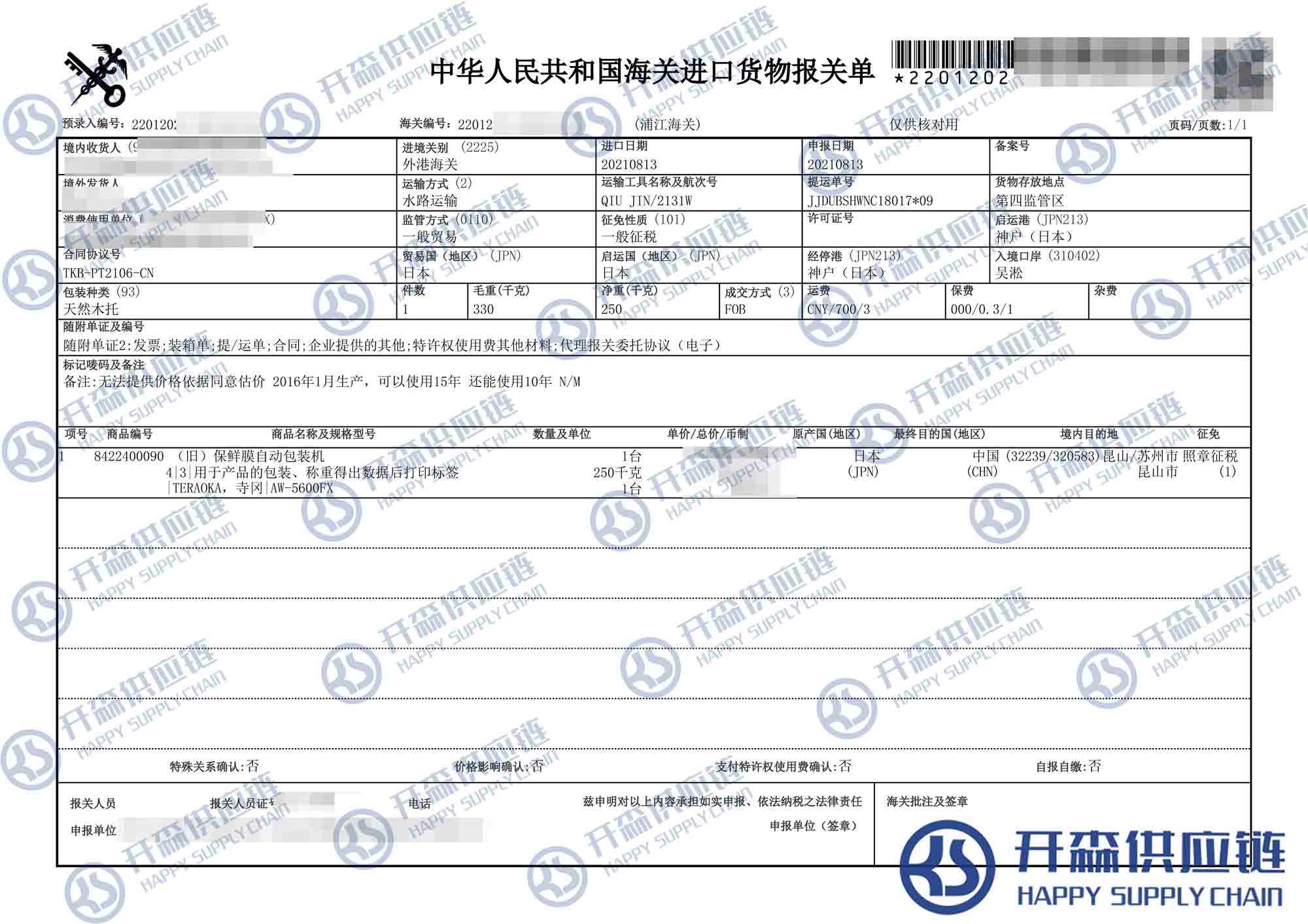 一、舊保鮮膜自動包裝機進口報關(guān)代理案例詳情