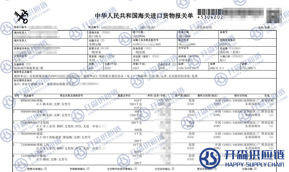一、美國滑板進(jìn)口報關(guān)代理案例詳情