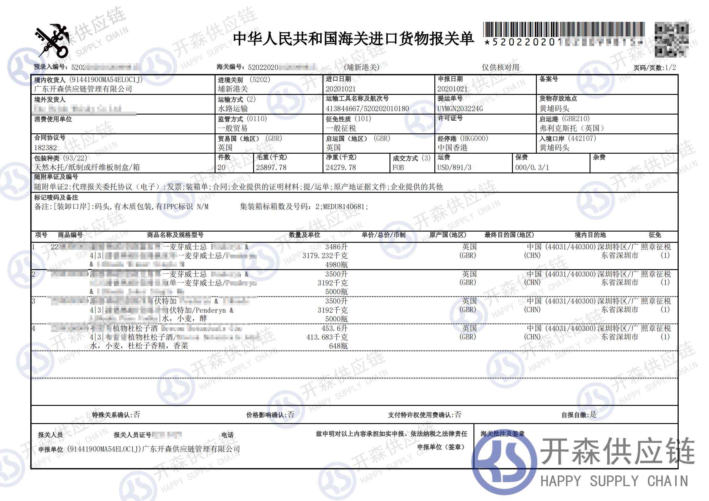 上述就是【進口案例】英國威爾威士忌進口報關(guān)代理服務(wù)的全部內(nèi)容,希望能對您有所幫助,如有酒類進口報關(guān)上任何疑問及問題可隨時在線聯(lián)系我們或撥打 18002611553,開森供應(yīng)鏈擁有豐富的酒類進口報關(guān)操作經(jīng)驗及案例,10余年進口經(jīng)驗為您所用,各類進口疑難都能為您一一解答及協(xié)助快速處理解決!