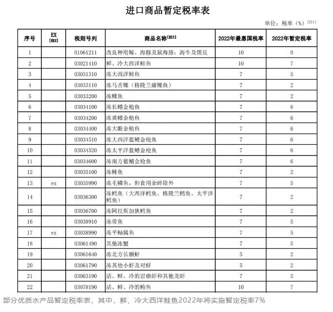 2021年12月15日,國務(wù)院關(guān)稅稅則委員會發(fā)布關(guān)于2022年關(guān)稅調(diào)整方案的通知,自2022年1月1日起,對部分商品的進出口關(guān)稅進行調(diào)整,北極蝦、三文魚和鱈魚等我們?nèi)粘I钪薪?jīng)常食用的進口海鮮的關(guān)稅都進行了調(diào)整,不久之后中國消費者們將買到更加物美價廉的進口海鮮。