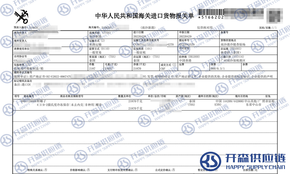 一、泰國鮮椰子進(jìn)口報(bào)關(guān)代理案例詳情
