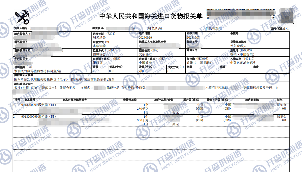 一、墨西哥舊激光器退運返修報關(guān)代理案例詳情